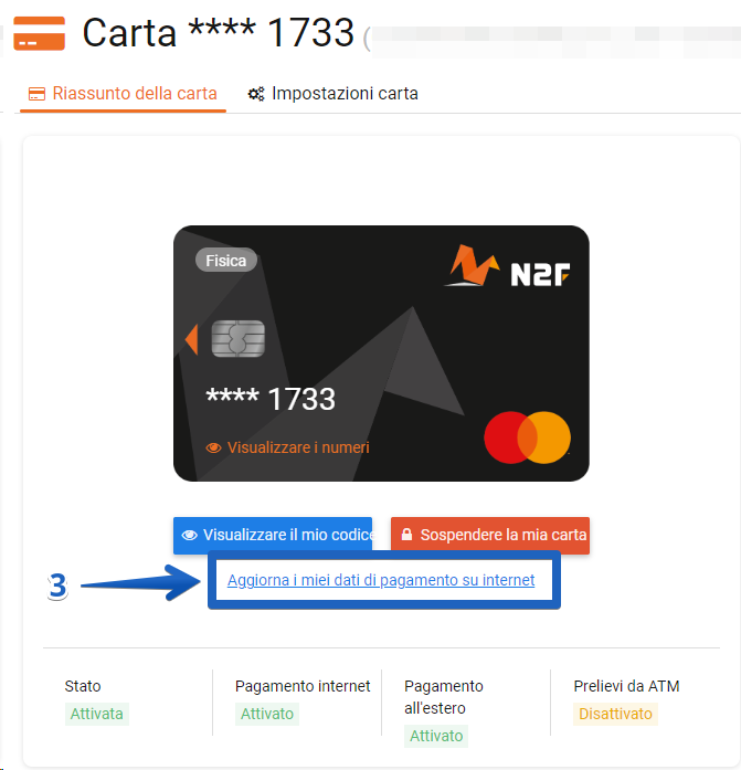 - Successivamente, clicca su "Aggiorna i miei dati di pagamento su internet" (3):