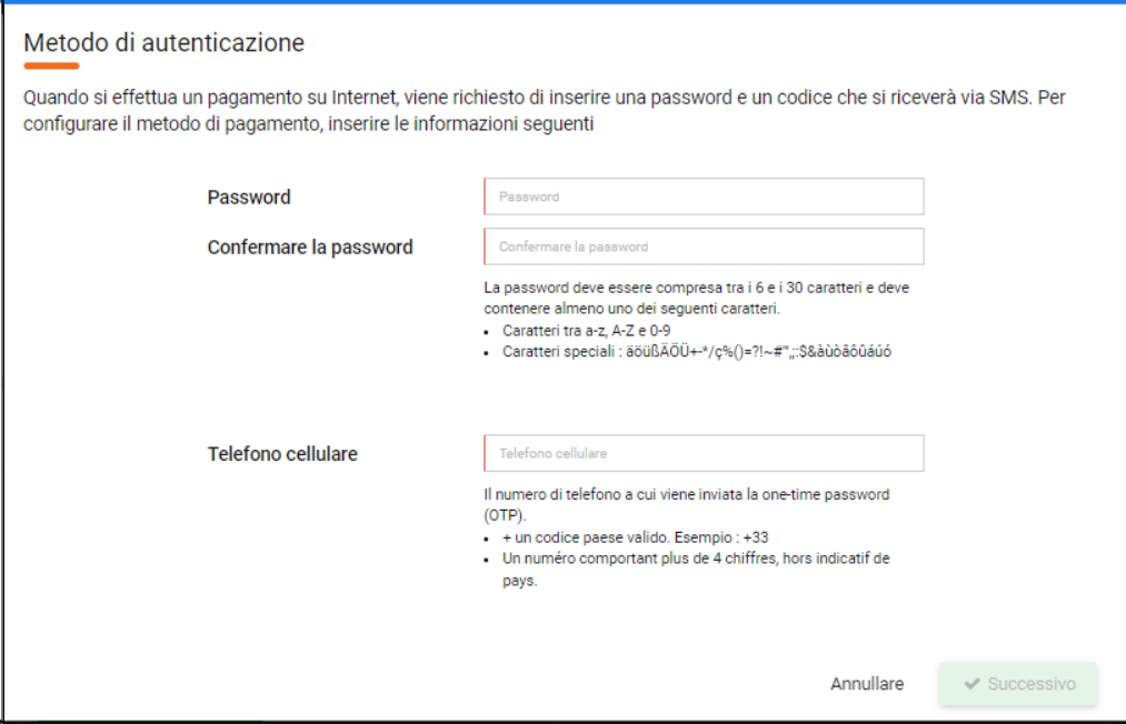 Una volta inserita la password, ti verrà inviato un codice tramite SMS al numero inserito nella stessa schermata.